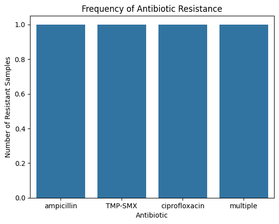 plt.show()Even a small dataset reveals patterns: maybe r(if our dataset was larger) AMP resistance is high in E.coli, or OXA resistance is prominent in S. aureus.